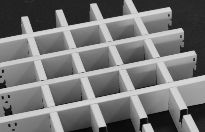 常規(guī)格柵(仰視見(jiàn)光面)標(biāo)準(zhǔn)寬度為10mm或15mm,高度有40mm、60mm和80mm可供選擇。