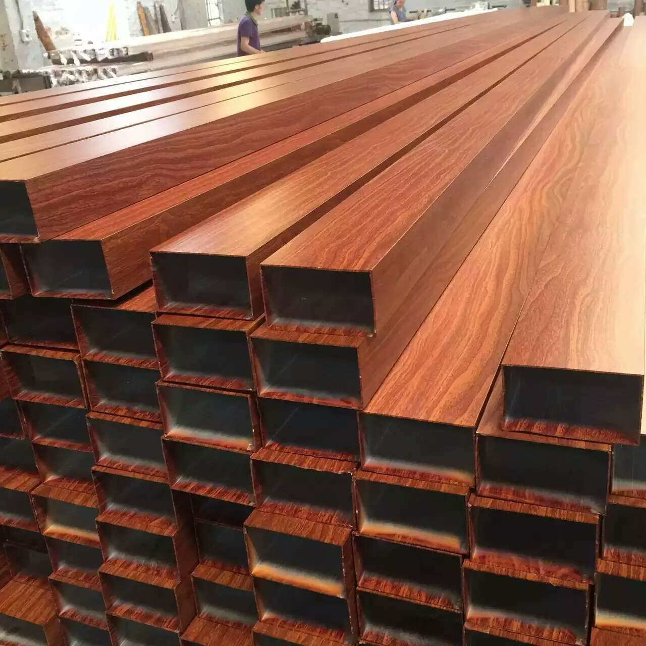 木紋鋁方通 木紋鋁方通特點: 木紋鋁方通 簡約明了的現(xiàn)代風格,安裝拆卸簡單方便,成為近幾年風靡裝飾市場的主要產(chǎn)品,鋁方通主要可分為U形鋁方通和型材鋁方通。